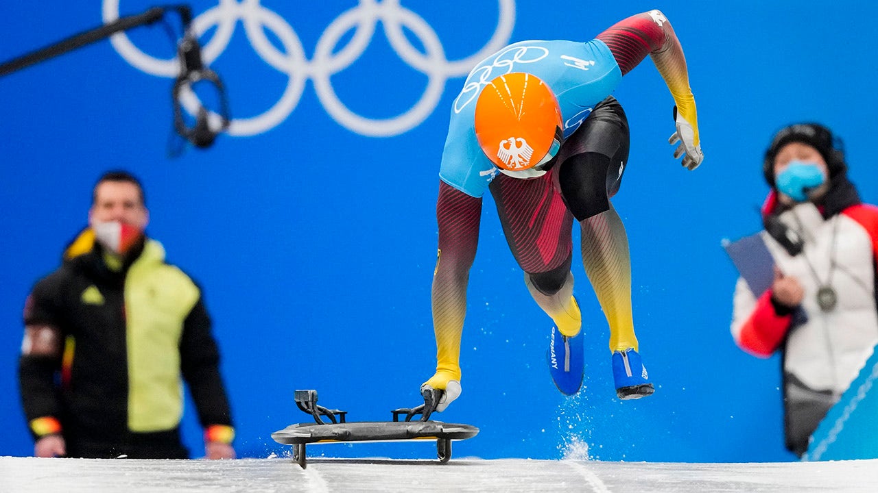 Germany has its first Olympic skeleton champion, and the country is simply sliding away from all challengers so far at the Beijing Olympics.