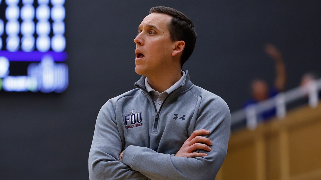 Head coach Jack Castleberry of the Fairleigh Dickinson Knights during the first half of a game against the Seton Hall Pirates at Walsh Gym Nov. 11, 2023, in South Orange, N.J. (Rich Schultz/Getty Images)