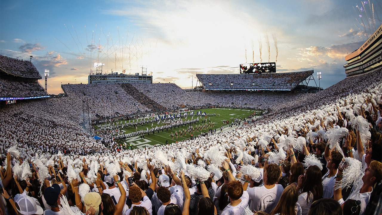 A general view as the Penn State Nittany Lions take the field while fireworks are displayed before the game against the West Virginia Mountaineers at Beaver Stadium on Sept. 2, 2023 in State College, Pennsylvania. (Scott Taetsch/Getty Images)