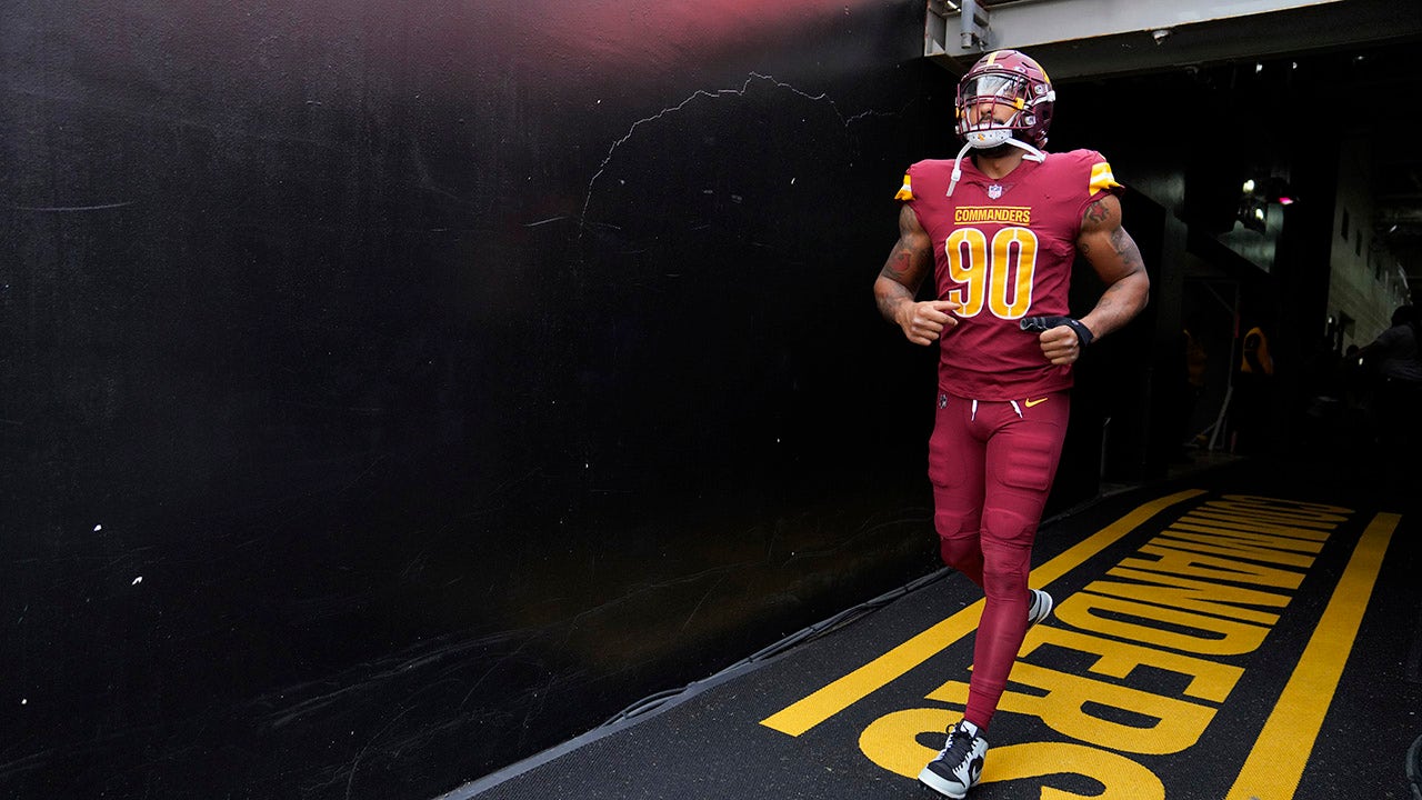 Montez Sweat of the Washington Commanders takes the field prior to a game against the Philadelphia Eagles at FedEx Field Oct. 29, 2023, in Landover, Md. (Jess Rapfogel/Getty Images)