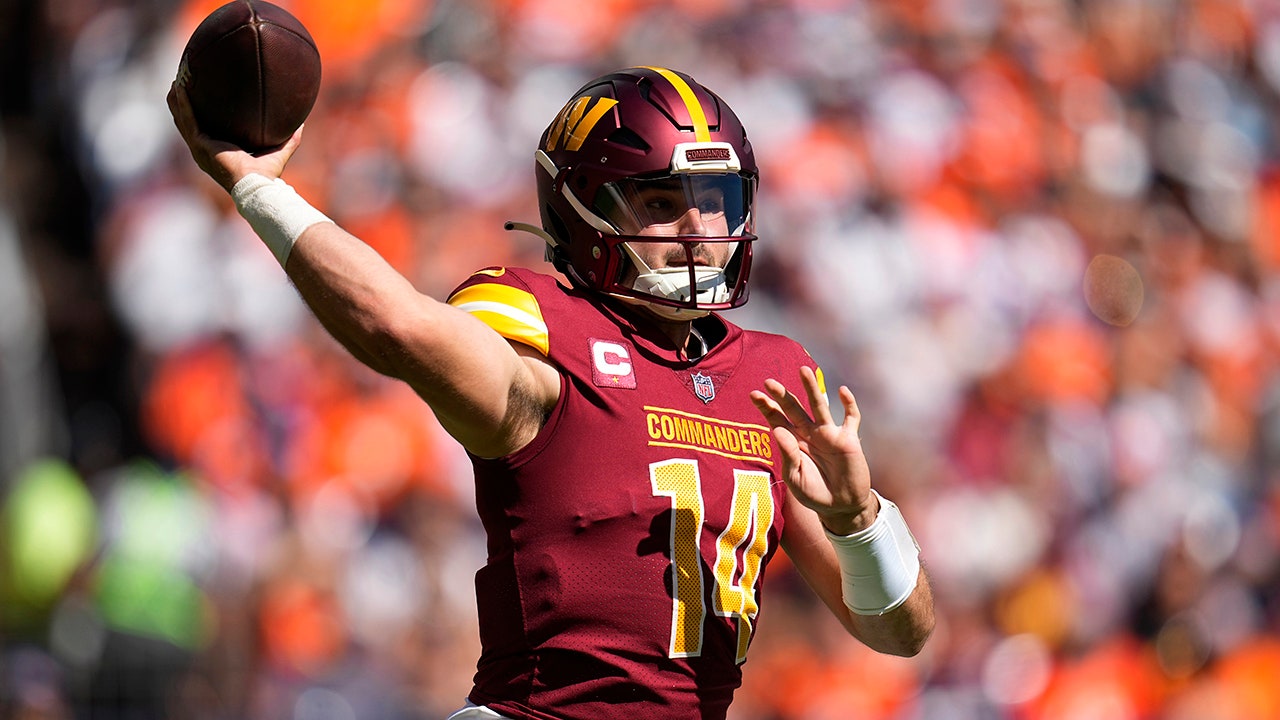 Washington Commanders quarterback Sam Howell passes against the Broncos in Denver on Sept. 17, 2023. (AP Photo/Jack Dempsey)
