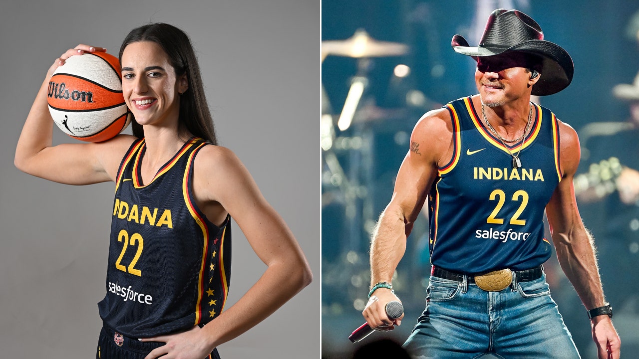 Tim McGraw wears a Caitlin Clark jersey at his concert in Indiana. (Indiana Fever)