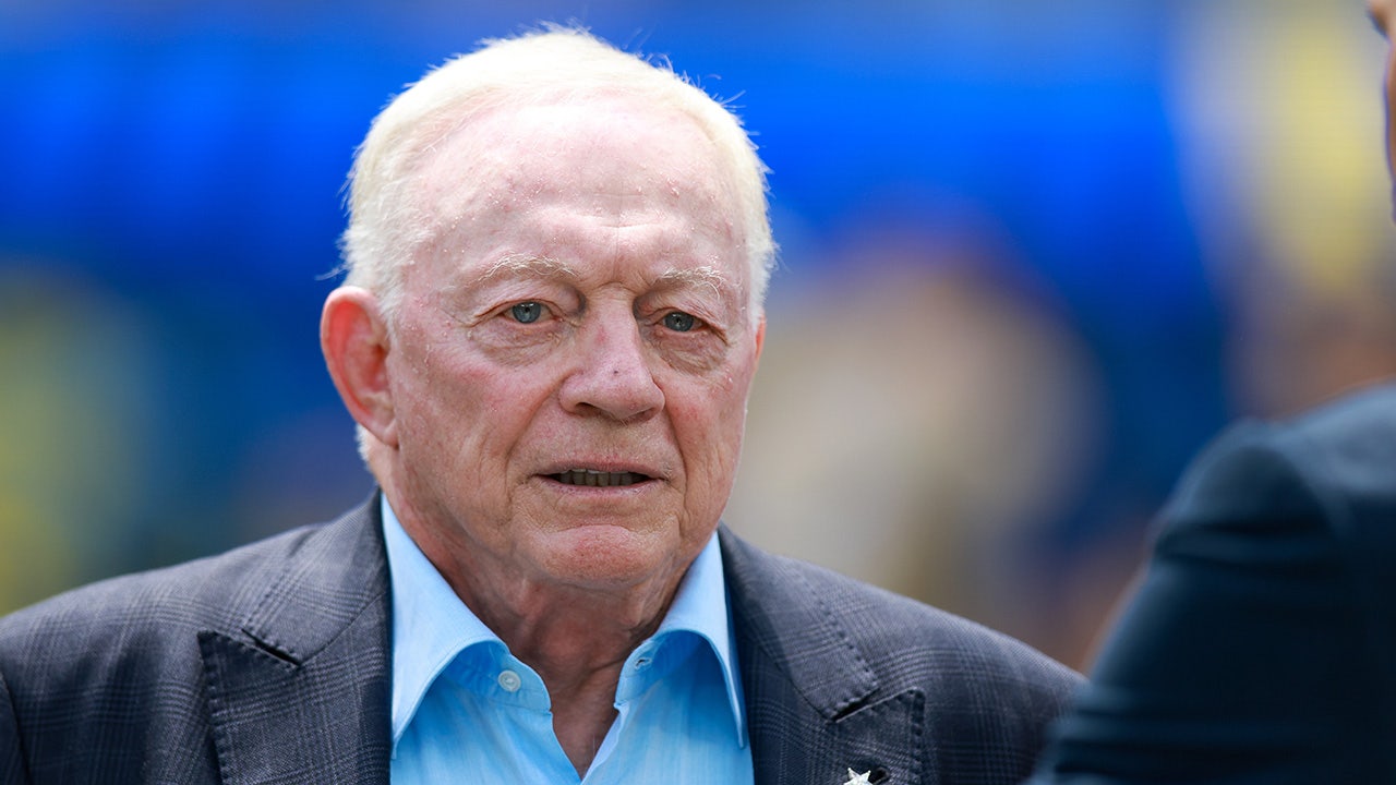 Owner Jerry Jones of the Dallas Cowboys attends a joint practice with the Los Angeles Rams at training camp on Aug. 8, 2024 in Oxnard, California. (Kevork Djansezian/Getty Images)