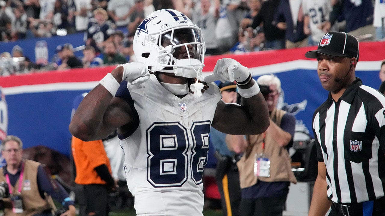 East Rutherford, New Jersey, USA; Dallas Cowboys wide receiver CeeDee Lamb (88) celebrates after a a touchdown against the Giants in the first half at MetLife Stadium. (Robert Deutsch-Imagn Images)