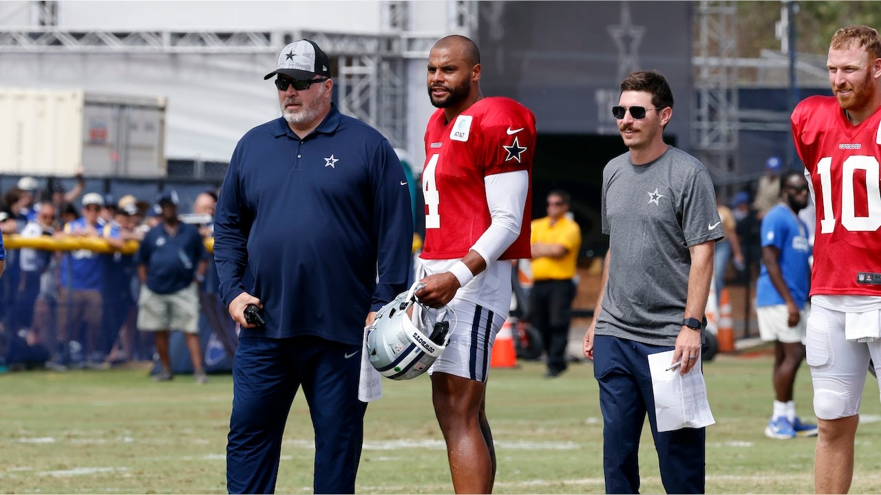 Dallas Cowboys quarterback Dak Prescott (4) passes during the Dallas Cowboys OTAs on May 22, 2024 at The Star in Frisco, TX. (George Walker/Icon Sportswire via Getty Images)