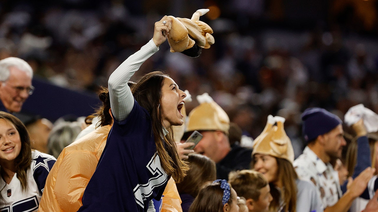 Fans cheer during the fourth quarter of the NFL game between the Las Vegas Raiders and Dallas Cowboys at AT&T Stadium on Nov. 25, 2021, in Arlington, Texas. (Tim Nwachukwu/Getty Images)