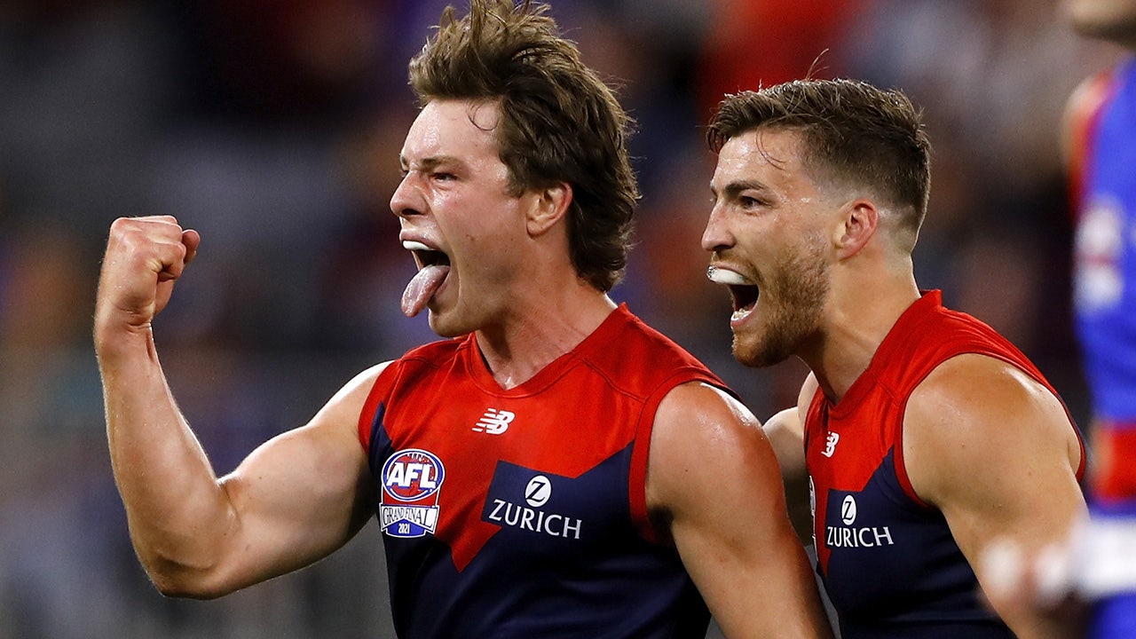 The Melbourne Demons kicked 12 straight goals in the third and fourth quarters to beat the Western Bulldogs by 74 points and end a 57-year title drought in Australian rules football.