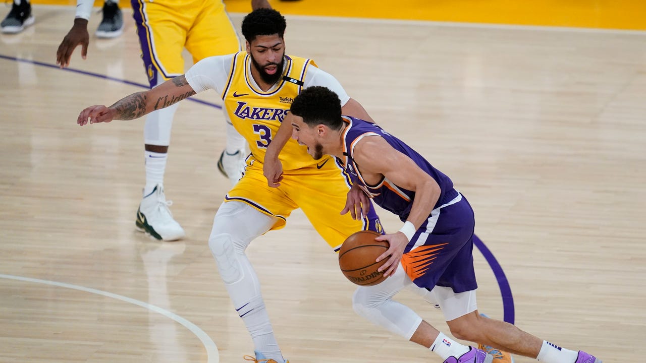 Anthony Davis returned to the Lakers' starting lineup after missing the second half of Game 4 and all of Game 5, but the eight-time All-Star played less than five and a half minutes before being sidelined again by his groin injury.