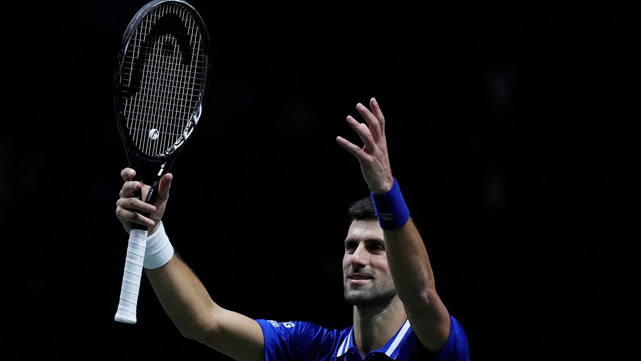 FILE - Serbia's Novak Djokovic after defeating Croatia's Marin Cilic during their Davis Cup tennis semi-final match at Madrid Arena in Madrid, Spain, on Dec. 3, 2021. Top-ranked Novak Djokovic has withdrawn from the ATP Cup in Australia ahead of the first Grand Slam of the season. Cup organizers didn't give a reason. The 34-year-old Serbian has declined to comment on his vaccination status in recent months and Australia’s strict regulations require all players, officials and fans to be fully vaccinated for COVID-19. (AP Photo/Bernat Armangue)
