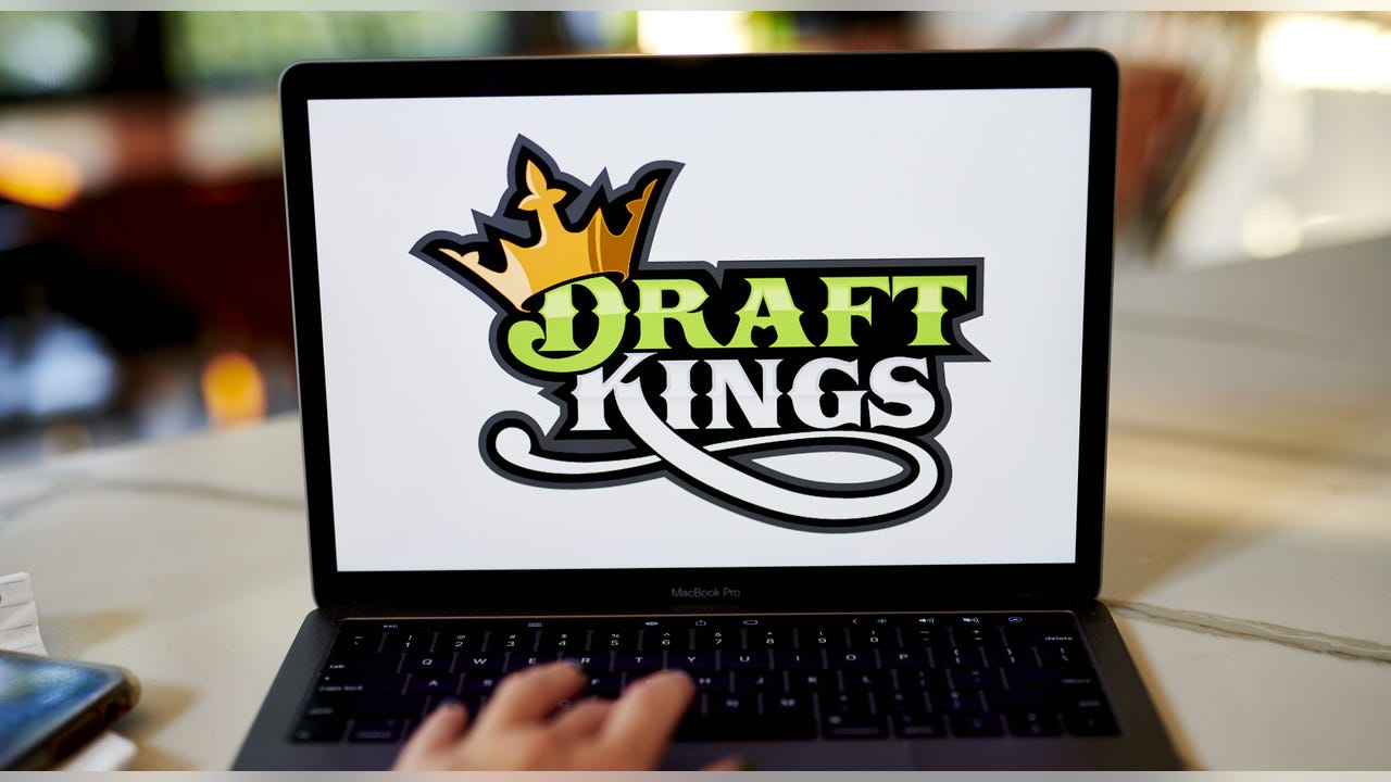 The logo for DraftKings is displayed on a laptop computer in an arranged photograph taken in Little Falls, New Jersey, U.S., on Wednesday, Oct. 7, 2020. The pricing of a DraftKings Inc. share sale combined with a fresh wave of Covid-19 infections across the National Football League sent shares of the online gaming company tumbling this week. (Gabby Jones/Bloomberg via Getty Images)