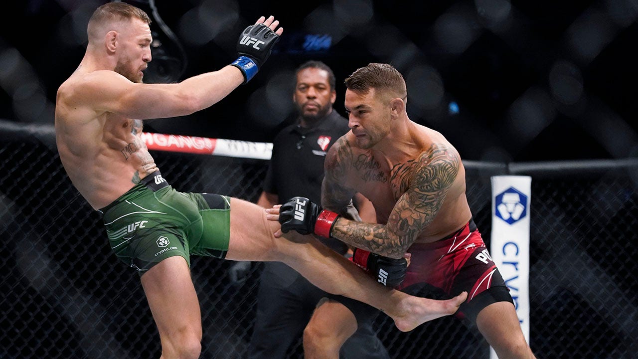 Poirier was able to control McGregor on the mat through much of the first round. McGregor had tried to put Poirier in the guillotine submission hold, but Poirier was able to get out of it and outmatch McGregor.