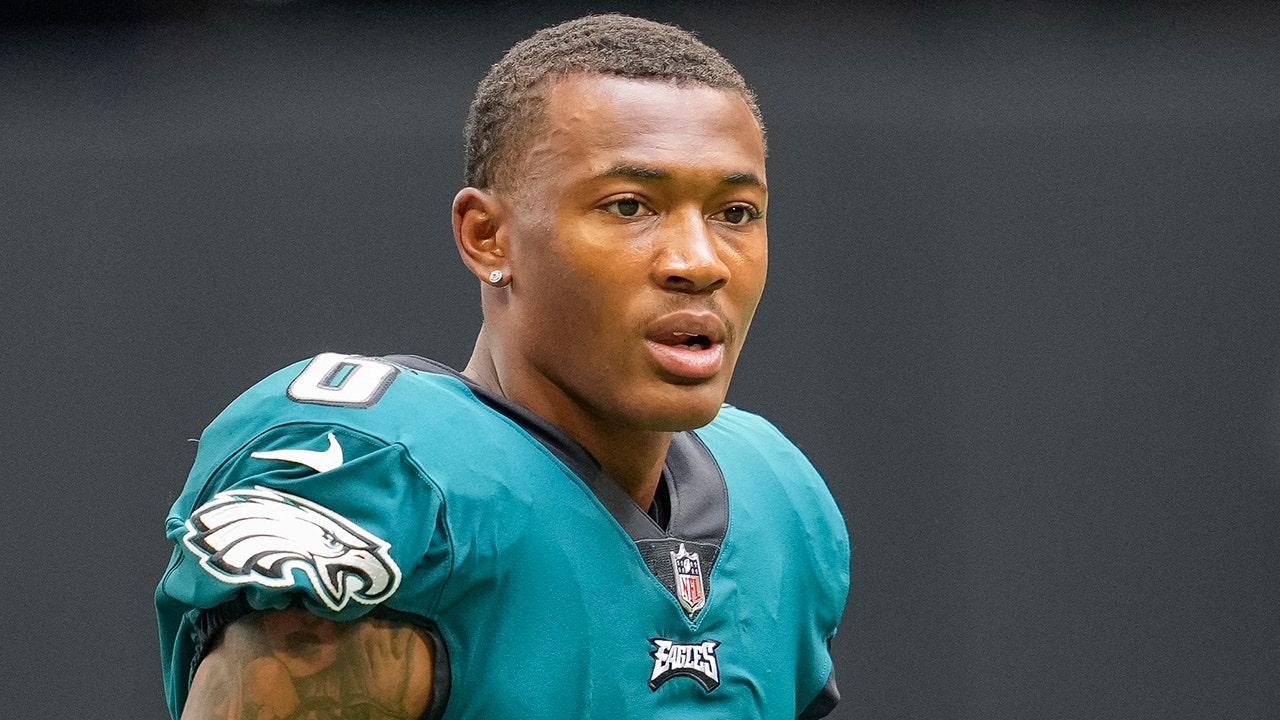 Eagles quarterback Jalen Hurts found Smith in the first quarter against the Atlanta Falcons on Sunday. The two connected for an 18-yard touchdown pass to go up 7-3 with 6:17 left.
