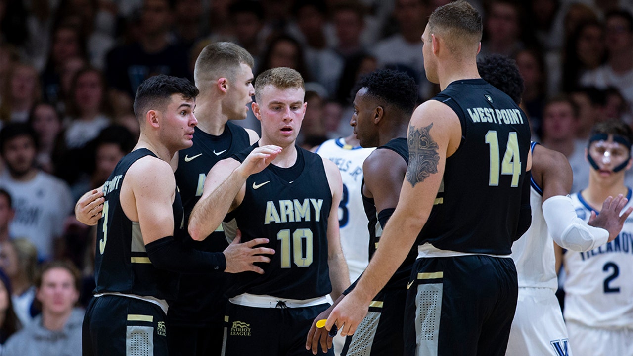 Tommy Funk #3, Tucker Blackwell #10 and Matt Wilson #14 of the Army Black Knights reacted against the Villanova Wildcats. (Photo by Mitchell Leff/Getty Images)