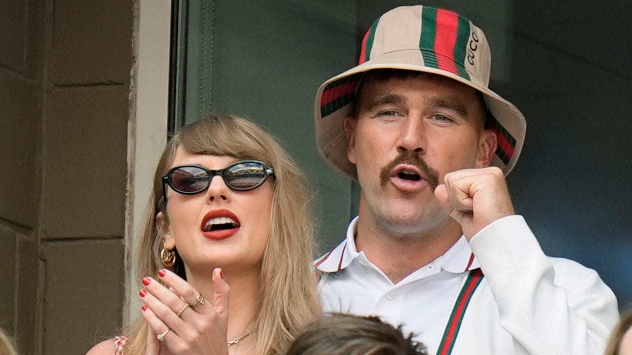 Taylor Swift and Travis Kelce watch the U.S. Open on Sept. 8, 2024, in New York. (AP Photo/Seth Wenig)