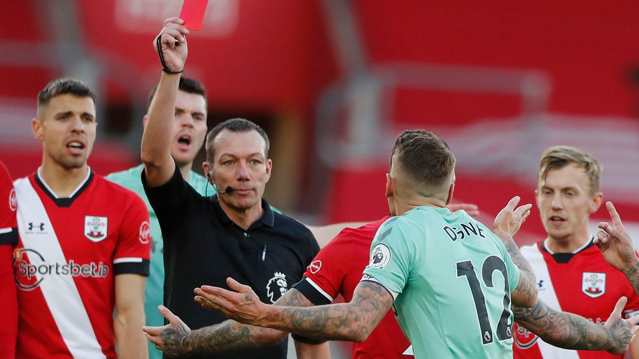 Lucas Digne, the adventurous left back so vital to Everton’s attacking game, is another player who will be missing for the foreseeable future after getting sent off for landing studs-first on the ankle of Southampton right back Kyle Walker-Peters midway through the second half.