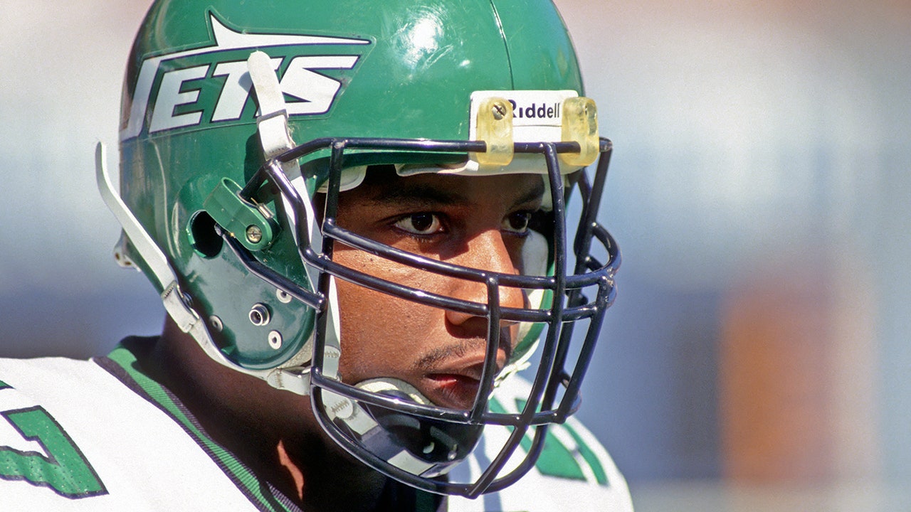 Linebacker Mo Lewis of the New York Jets before a game against the Buffalo Bills at Giants Stadium Oct. 24, 1993, in East Rutherford, N.J. (George Gojkovich/Getty Images)