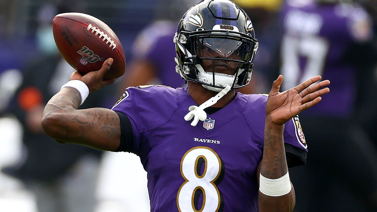 Quarterback Lamar Jackson, #8 of the Baltimore Ravens, warms up prior to their game against the Jacksonville Jaguars at M&T Bank Stadium on Dec. 20, 2020 in Baltimore. (Todd Olszewski/Getty Images)