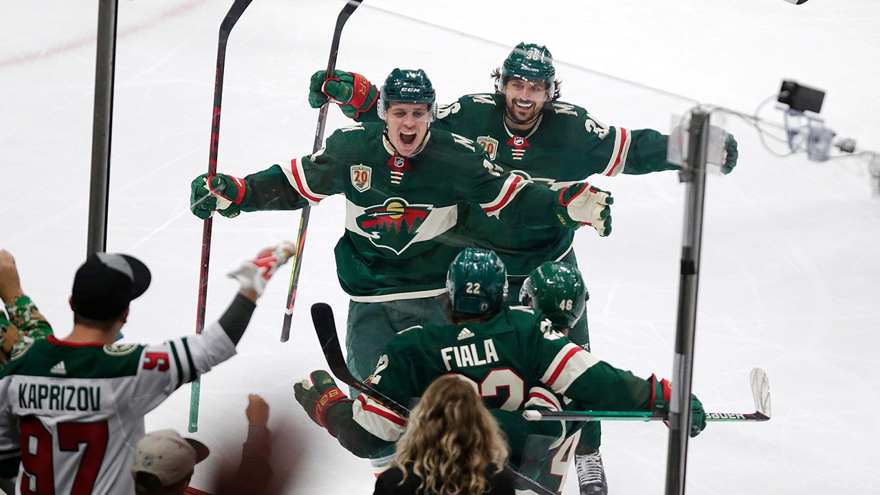 After 44:21 of scoreless play, this tightly checked game finally opened up when the bounce off a blocked shot caught the Golden Knights flat-footed and Fiala found space for an odd-man rush with Hartman. Fiala set his partner up perfectly, and Hartman sent the puck above Fleury’s glove to ignite the 25% capacity crowd at Xcel Energy Center.