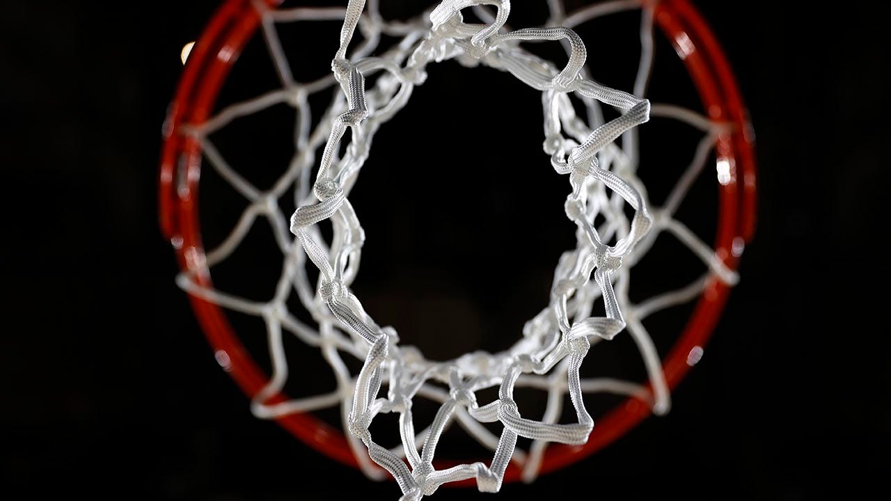 A detail of a basketball hoop and net at Climate Pledge Arena on March 22, 2023 in Seattle. (Steph Chambers/Getty Images)