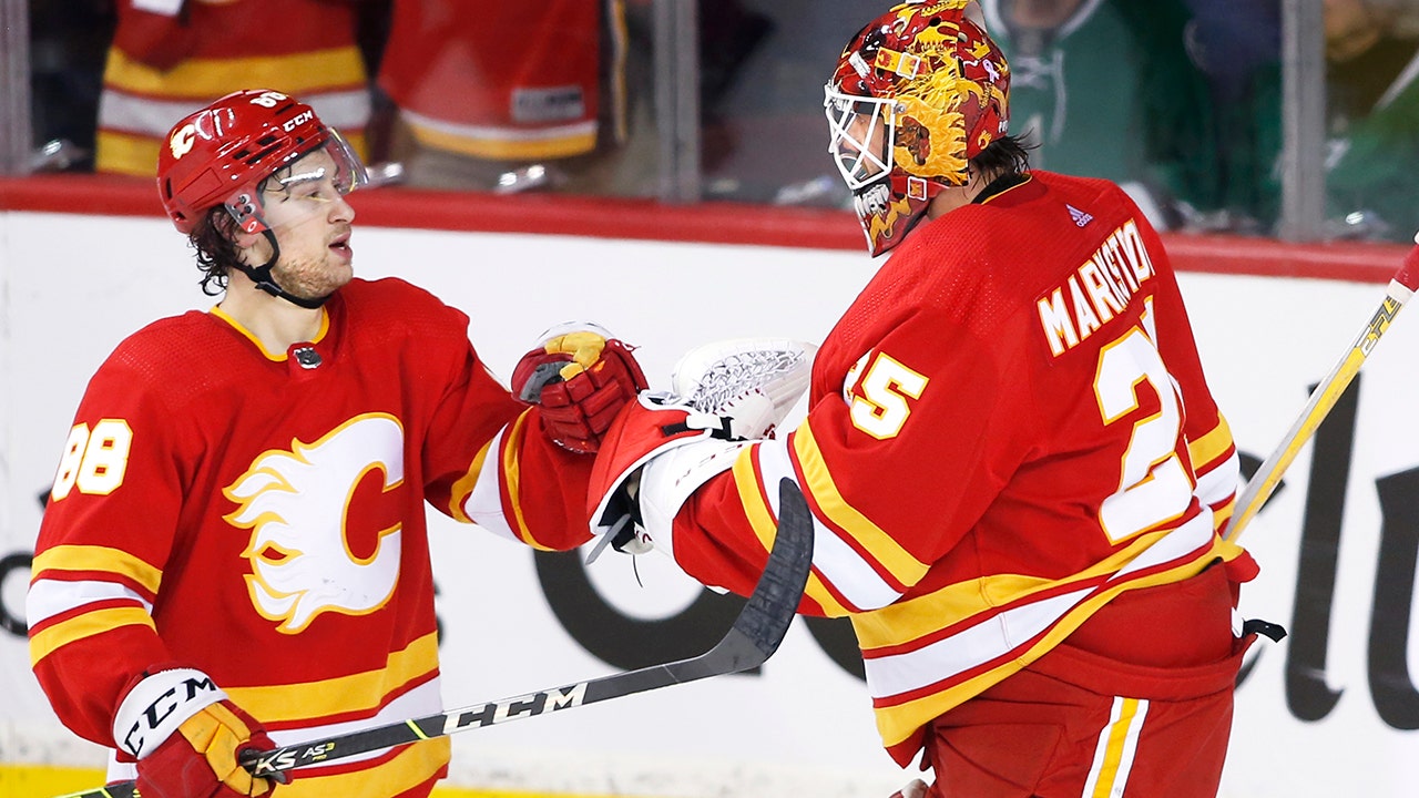 Mangiapane circled out from behind the goal line and centered the puck for Backlund’s redirect by Oettinger to make it 1-1 at 6:49 of the third.