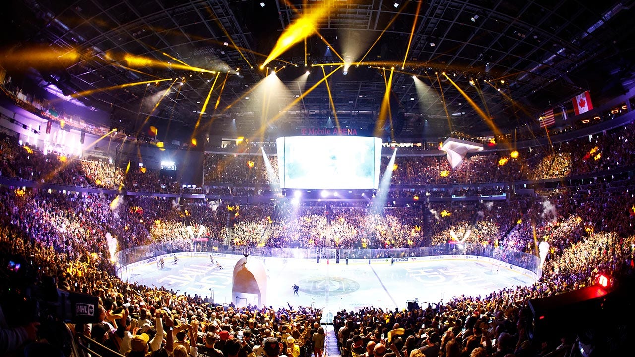 Fans crowd the stands during the pregame show before Game 2 of the Stanley Cup Finals between the Florida Panthers and the Vegas Golden Knights on June 5, 2023, at T-Mobile Arena in Las Vegas. (Jeff Speer/Icon Sportswire via Getty Images)