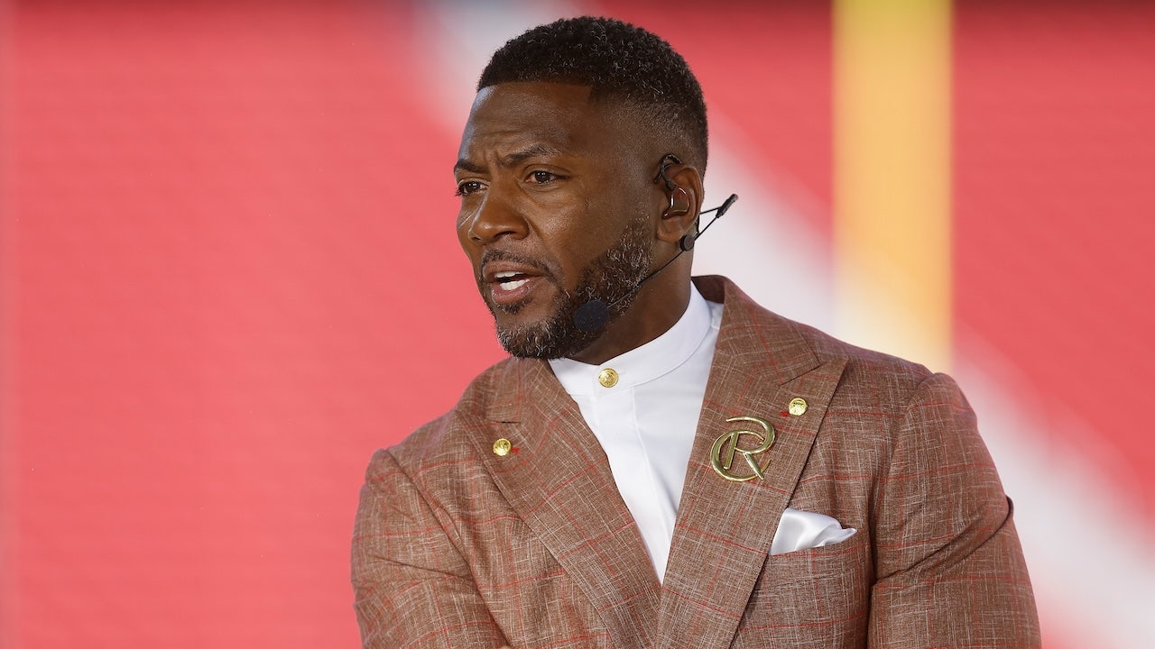 ESPN analyst Ryan Clark broadcasts from the field before a game between the San Francisco 49ers and New York Jets at Levi's Stadium Sept. 9, 2024, in Santa Clara, Calif. (Lachlan Cunningham/Getty Images)
