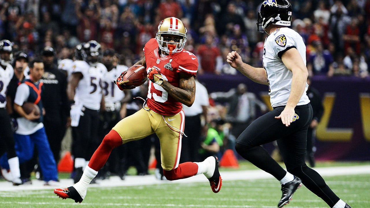 Ted Ginn Jr. of the San Francisco 49ers returns the ball against the Baltimore Ravens during Super Bowl XLVII, February 3, 2013, in New Orleans. (Harry How/Getty Images)
