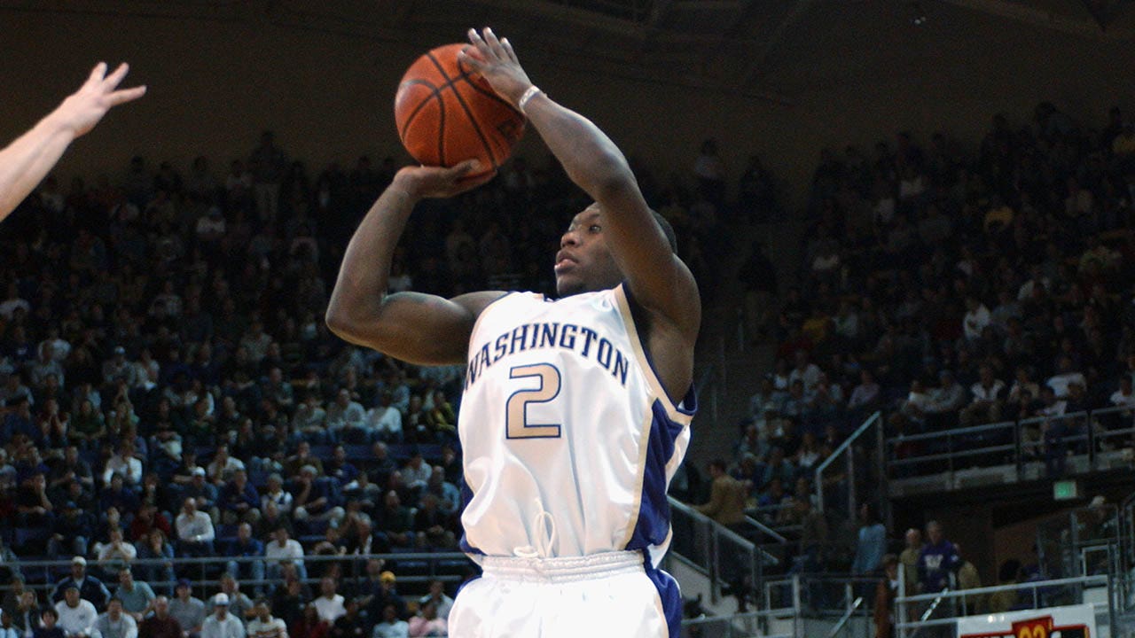 Nate Robinson of the University of Washington Huskies shoots against the University of Oregon Ducks during a game at Bank of America Arena Feb. 22, 2003, in Seattle. (Otto Greule Jr/Getty Images)