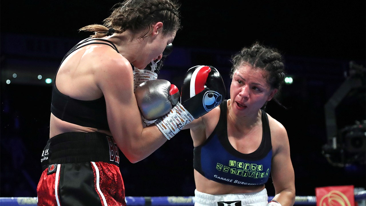 Terri Harper in action against Viviane Obenauf (Reuters/John Clifton)