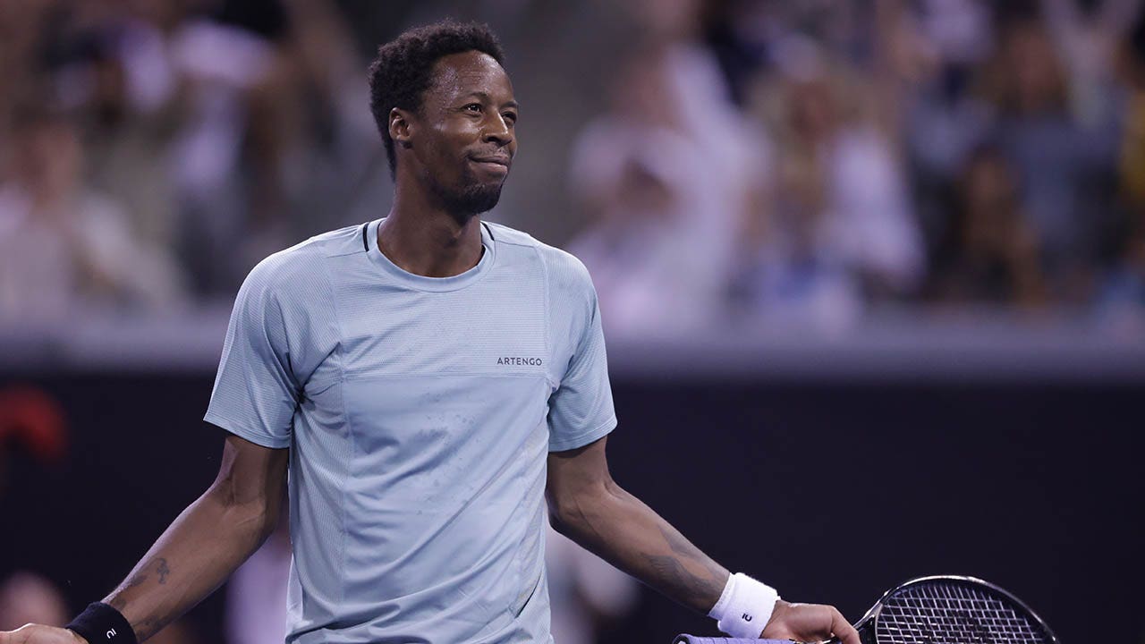 Gael Monfils celebrates after winning a point against Ben Shelton in a UTS tennis match at Dignity Health Sports Park. (Yannick Peterhans-USA Today)