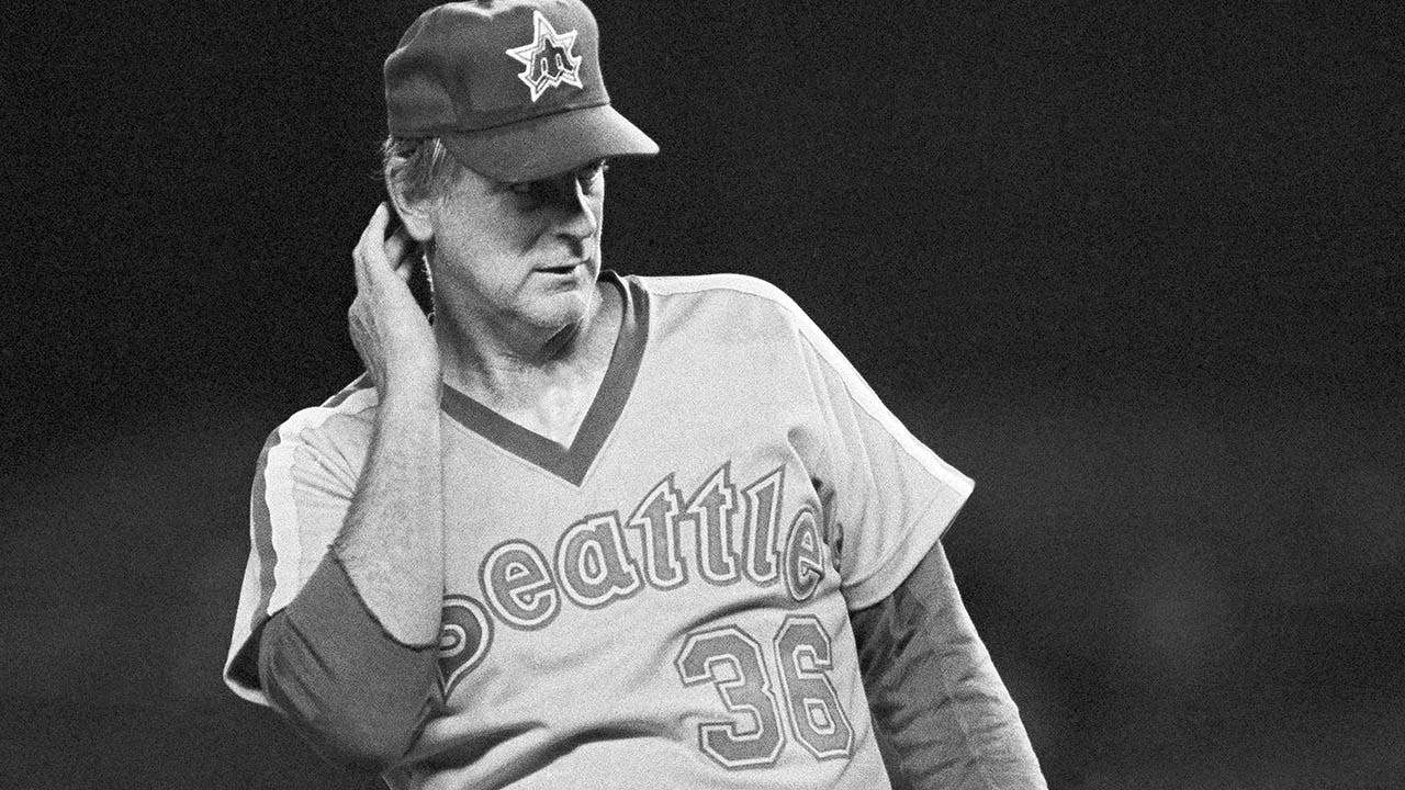 Seattle Mariners pitcher Gaylord Perry prepares to throw a pitch during a game against the New York Yankees at Yankee Stadium in New York on May 1, 1982. (AP Photo/Ray Stubblebine, File)