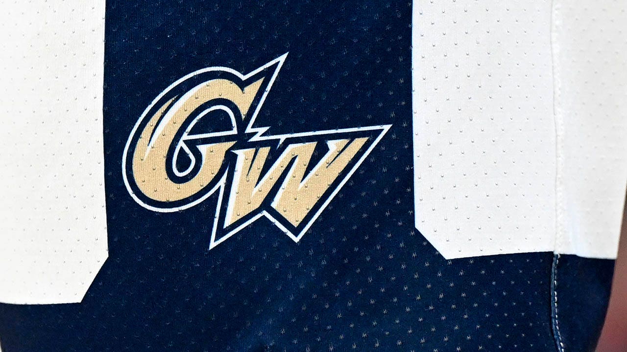 The George Washington Colonials logo on their uniform during the Massachusetts Minutemen game at Capital One Arena on March 10, 2022, in Washington, D.C. (G Fiume/Getty Images)