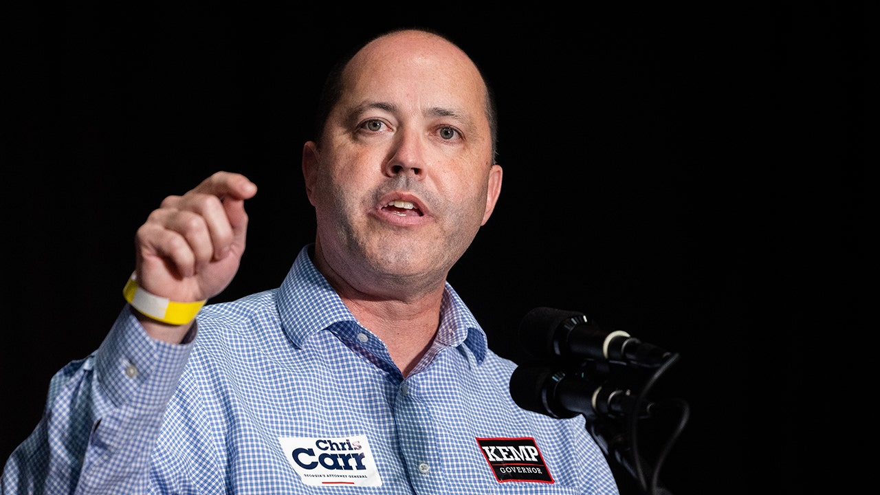 Georgia Attorney General Chris Carr speaks at a campaign event for Republican Senate Candidate for Georgia, Hershel Walker on September 9, 2022 in Gwinnett, Georgia. Heisman Trophy winner Herschel Walker is running against incumbent Democratic Senator Raphael Warnock for November's election. (Megan Varner/Getty Images)
