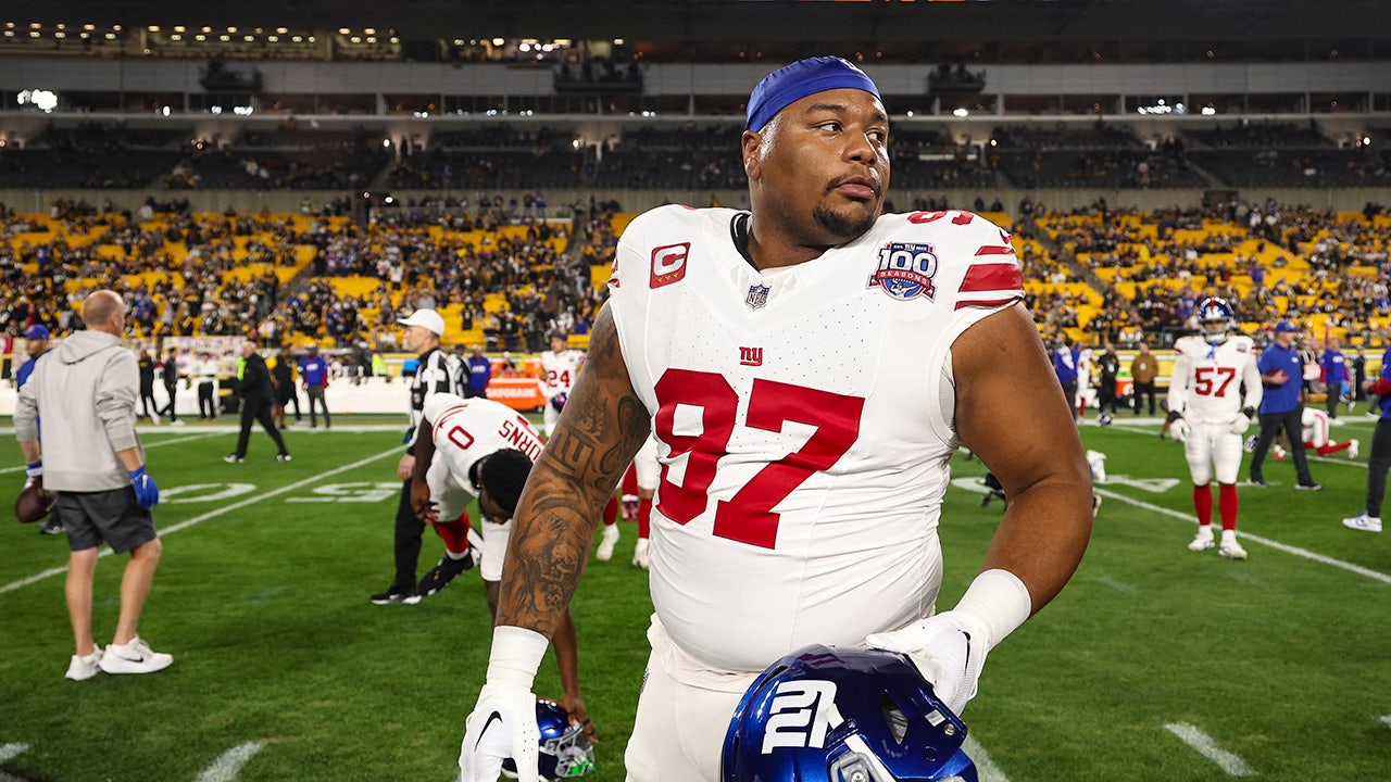 New York Giants defensive tackle Dexter Lawrence warms up prior to the game against the Pittsburgh Steelers at Acrisure Stadium in Pittsburgh on Oct. 28. (Perry Knotts/Getty Images)