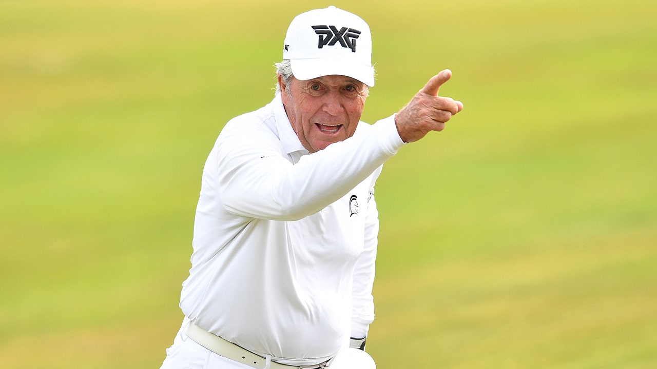 Gary Player gestures at the 3rd green prior to The Senior Open Presented by Rolex at The King's Course on July 19, 2022, in Gleneagles, United Kingdom. (Mark Runnacles/Getty Images)