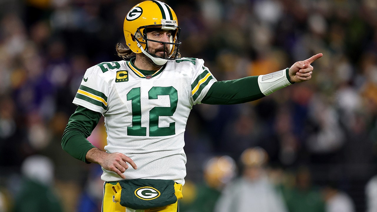 Aaron Rodgers of the Green Bay Packers reacts during the third quarter of the game against the Baltimore Ravens in Baltimore, Maryland, on Dec. 19, 2021. (Patrick Smith/Getty Images)