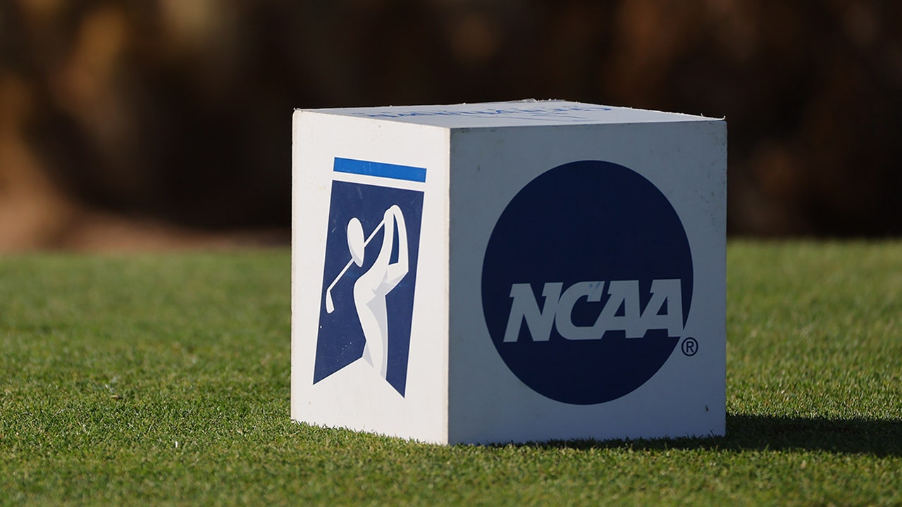 The NCAA logo is seen during the match between the Georgia Tech Yellow Jackets and the Florida Gators during the Division I Men's Golf Championship held at Grayhawk Golf Club in Scottsdale, Arizona, on May 31, 2023. (C. Morgan Engel/NCAA Photos via Getty Images)
