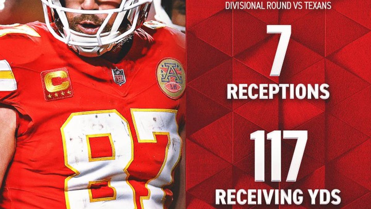 Reid and Patrick Mahomes have found production with rookie receiver Xavier Worthy and even tight end Noah Gray. But it's not like Kelce has altogether disappeared. That's what made the divisional round so strange. Houston often lost track of the greatest pass-catching tight end in NFL history. You know: the guy dating Taylor Swift. And the guy who is among the most prolific pass-catchers in the history of the postseason? We all know him.