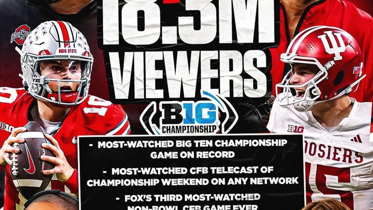 FOX announced on Tuesday the viewership numbers for the undefeated Hoosiers' historic 13-10 win in a battle between college football's top two teams, and the results were staggering. The contest went down as the most-watched Big Ten title game on record, drawing 18,332,000 viewers on FOX.