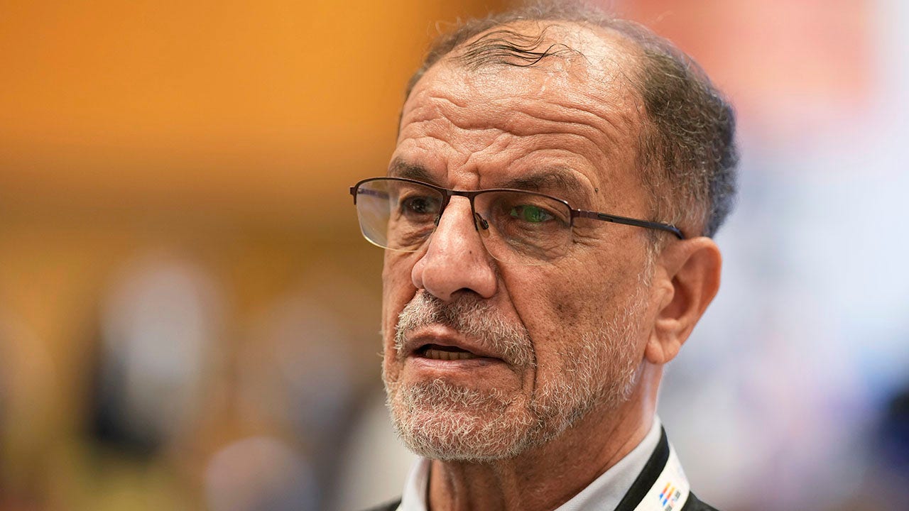 Mahmoud Khosravi Vafa, president of Iran's national Olympic committee, takes a reporter's question during an interview in Seoul, South Korea, Thursday, Oct. 20, 2022. (AP Photo/Lee Jin-man)