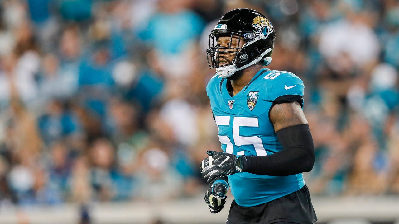 Lerentee McCray #55 of the Jacksonville Jaguars looks on during a game against the Tennessee Titans at TIAA Bank Field on September 19, 2019 in Jacksonville, Florida. (Photo by James Gilbert/Getty Image)