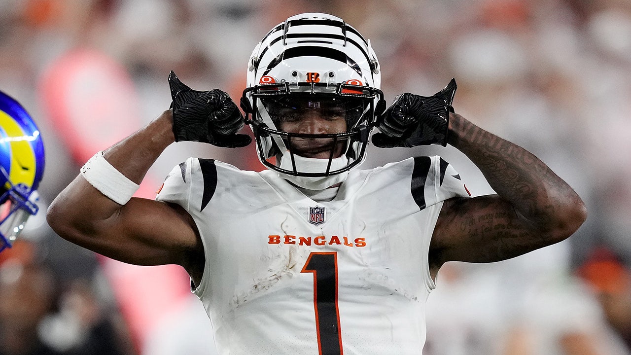 Ja'Marr Chase #1 of the Cincinnati Bengals celebrates after making a catch against the Los Angeles Rams during the third quarter at Paycor Stadium on Sept. 25, 2023. (Dylan Buell/Getty Images)