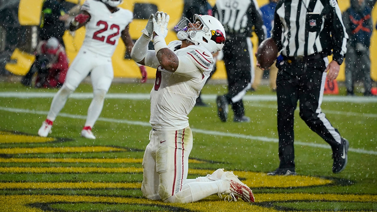 Trubisky entered and the Steelers opted to go for it on fourth-and-goal from the 1. Najee Harris was stuffed for no gain and the Cardinals responded with a 15-play, 99-yard drive — most of it in a driving rain — that ended with a dart from Murray to McBridge.