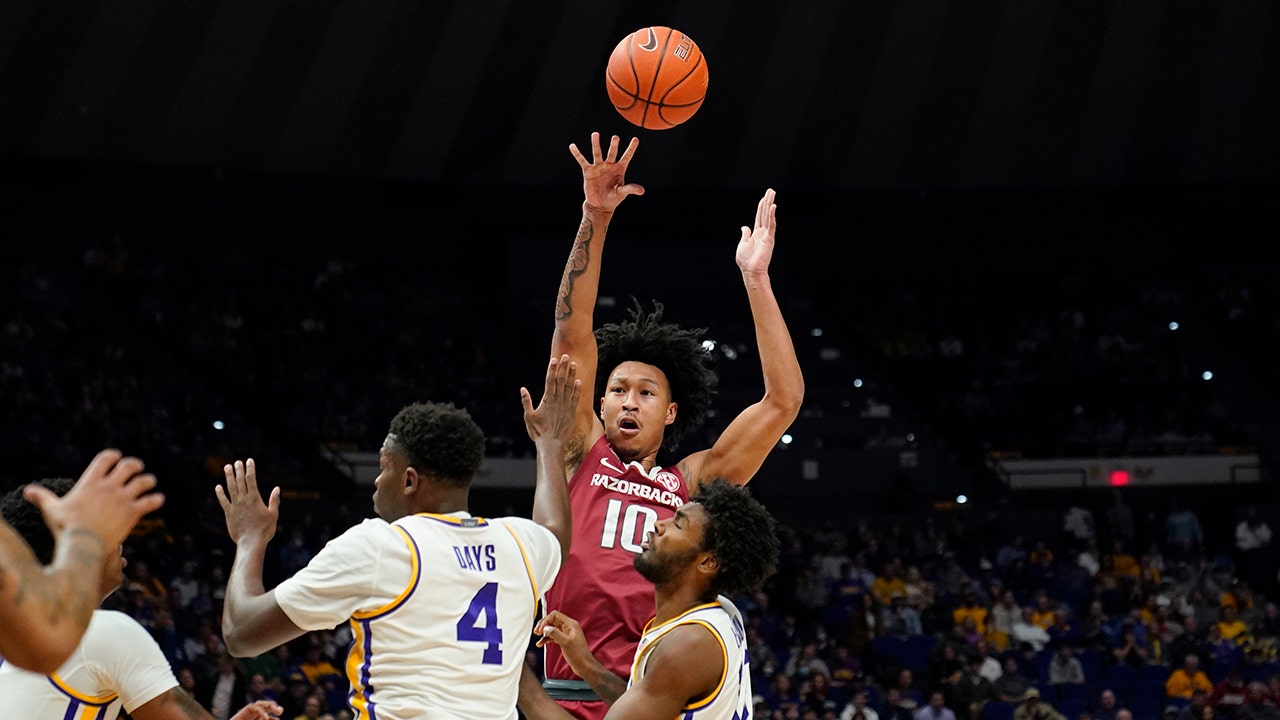 Notae’s 3-pointer with 3:29 remaining put Arkansas in front. The Tigers stopped their scoring drought on a dunk by Fudge that made it 58-all with 2:16 to play. Those were the only two points for LSU in the final nine minutes.