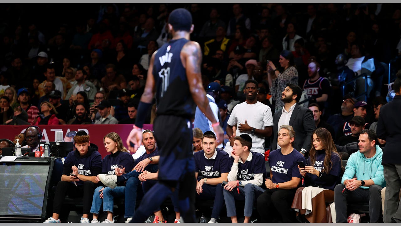 A group of Jewish fans wore "Fight Anti-Semitism" T-shirts and were heckling star point guard Kyrie Irving during the Brooklyn Nets' game with the Indiana Pacers on Monday night at Barclays Center.