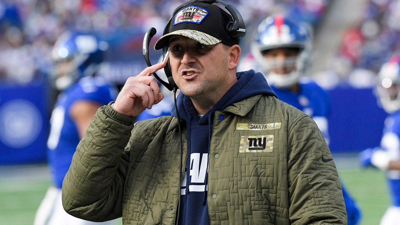 New York Giants head coach Joe Judge is seen of the sidelines during the first half of an NFL football game against the Kansas City Chiefs Monday, Nov. 1, 2021, in Kansas City, Mo. (AP Photo/Charlie Riedel)