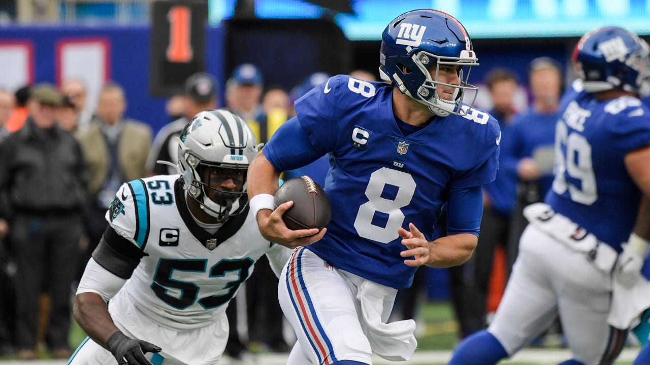 New York's much-maligned defense had its best game of the season, limiting Carolina to 173 yards, forcing a safety on an intentional grounding, and getting an interception from James Bradberry, another former Panther. Rookie linebacker Azeez Ojulari had 2 1/2 of New York's six sacks. Carolina was 2 of 15 on third downs.
