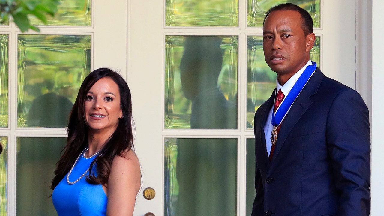 Tiger Woods, right, with his daughter Sam Alexis Woods and his then-girlfriend Erica Herman walk along the Colonnade following a ceremony when then-President Trump awarded the Presidential Medal of Freedom to Tiger Woods at the White House in Washington, on May 6, 2019. (AP Photo/Manuel Balce Ceneta, File)