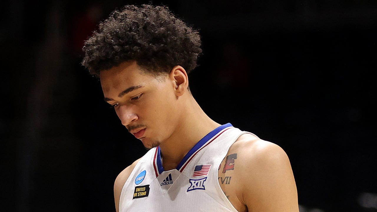 INDIANAPOLIS, INDIANA - MARCH 22: Jalen Wilson #10 of the Kansas Jayhawks walks off the court after being defeated 85-51 by the USC Trojans in their second round game of the 2021 NCAA Men's Basketball Tournament at Hinkle Fieldhouse on March 22, 2021 in Indianapolis, Indiana. (Photo by Gregory Shamus/Getty Images) (Gregory Shamus/Getty Images)