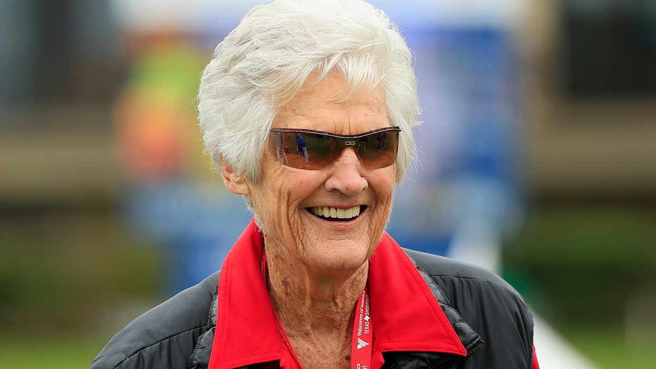 Golf legend Kathy Whitworth waits on the first tee during the third round of the Volunteers of America Texas Shootout at Las Colinas Country Club on April 30, 2016 in Irving, Texas. (Scott Halleran/Getty Images)